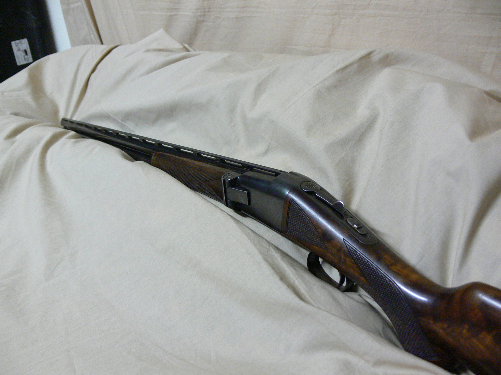 These are pictures of the .410 that Erich is pictured holding. The gun was found when the owner had it appraised and found this web site by searching for a side break shotgun. There are no markings of any kind anywhere on this gun. Without this web site it would have taken years to ID this gun, but here it's pictured with the Master Gunsmith that built it. ![]()
